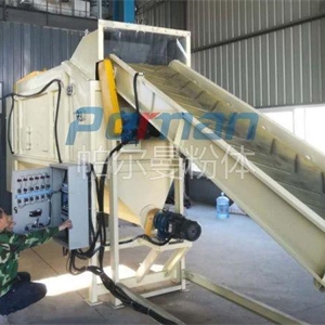 生產(chǎn)原材料會(huì)在皮帶輸送的作用進(jìn)行進(jìn)入到無塵拆包機(jī)中進(jìn)行拆包作業(yè),分離出的散料會(huì)在出料口直接進(jìn)入到管鏈輸送機(jī)設(shè)備入料口中進(jìn)行傳輸作業(yè)。
