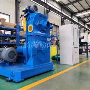 負(fù)壓空氣研磨系統(tǒng)的設(shè)備積垢問題經(jīng)常是討論的焦點(diǎn)。設(shè)備的清洗,特別是輸送風(fēng)機(jī)的清洗過于耗時(shí)。此外,在開機(jī)和關(guān)機(jī)過程中風(fēng)機(jī)葉輪上的積垢還可能剝落,導(dǎo)致風(fēng)機(jī)的振動及其運(yùn)轉(zhuǎn)狀態(tài)的振蕩。因此可考慮由負(fù)壓流程改為正壓流程。在新的工作模式下風(fēng)機(jī)安裝在分級磨之前,將工藝空氣壓入研磨系統(tǒng)。這種工作模式的優(yōu)點(diǎn)是研磨后的碳酸氫鈉不通過風(fēng)機(jī)運(yùn)輸,完全避免了風(fēng)機(jī)的積垢問題。此外風(fēng)機(jī)的耗電也有所降低,使經(jīng)營成本更低,但是對設(shè)備的密封性能提出了更高的考驗(yàn),無論是設(shè)備的設(shè)計(jì)結(jié)構(gòu)、加工精度及配合都有嚴(yán)格的要求,設(shè)備的造價(jià)成本也會更高。