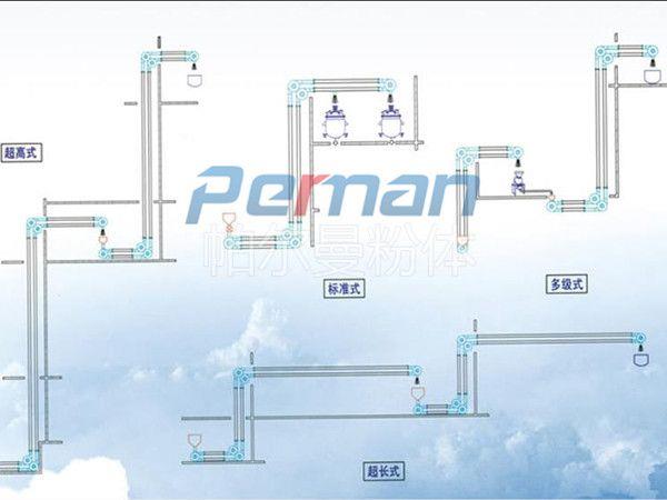 氣力輸送:1、物料輸送速度高3-40m/s 2、磨損大 3、產生火花危險 4、物料殘次品高 5、20倍的能量消耗